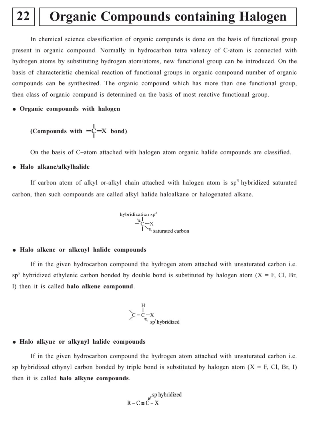 Topic Name 10 Haloalkanes and Haloarenes 10.1 Classification 10.2 Nomenclature 10.3 Nature of C–X Bond 10.4 Methods of Preparation of Haloalkanes 10.5 Preparation of Haloarenes 10.6 Physical Properties 10.7 Chemical Reactions