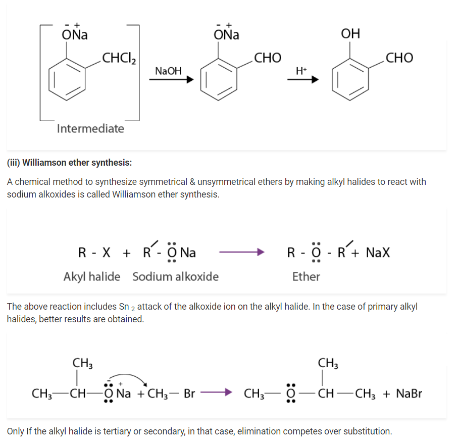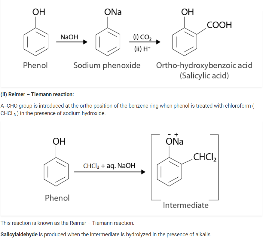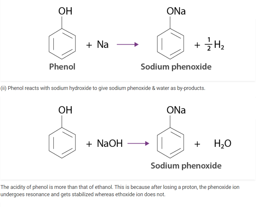 (i) Phenol reacts with sodium to give sodium phenoxide, liberating H2.