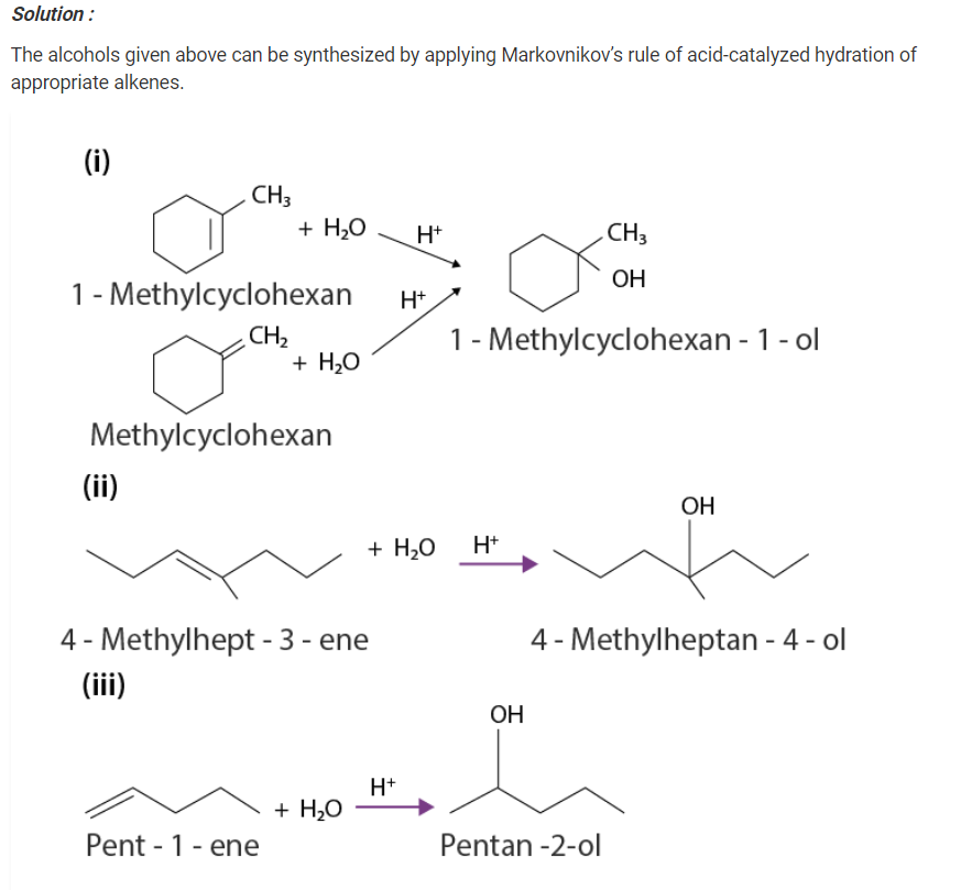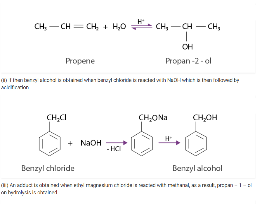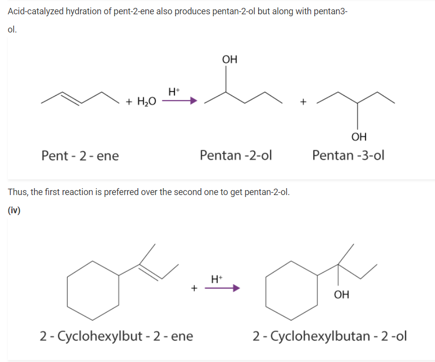 (i) When propene is reacted with water in the presence of an acid as a catalyst, as a result, we obtain propan – 2 – ol.
