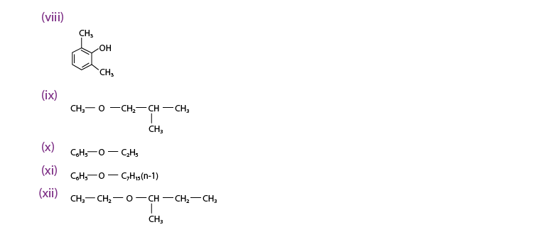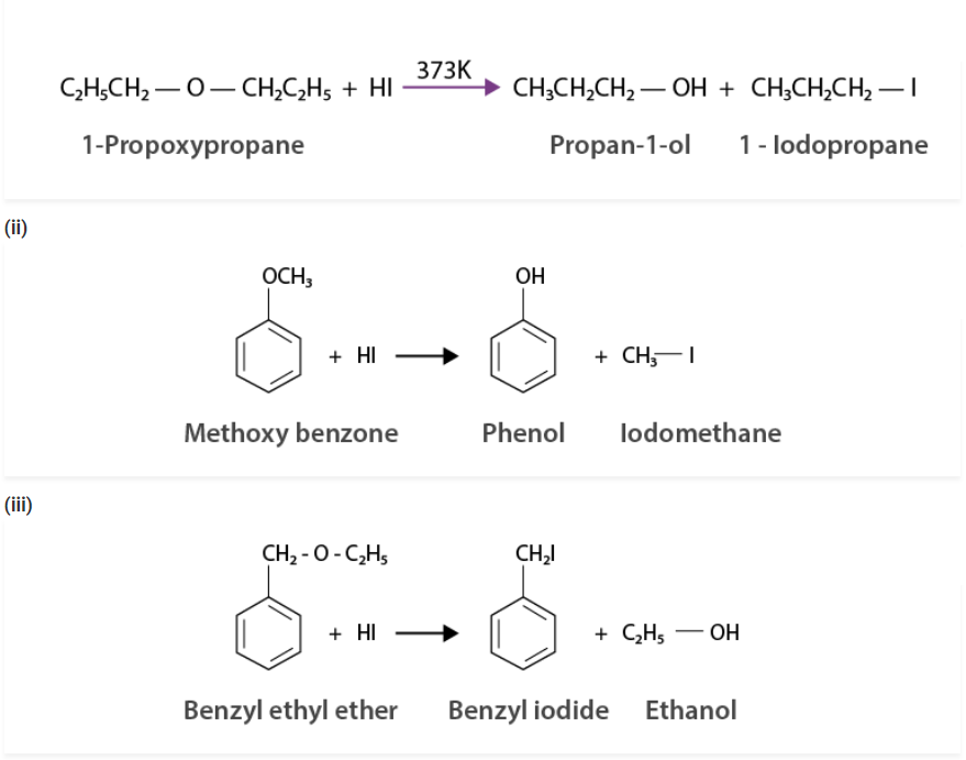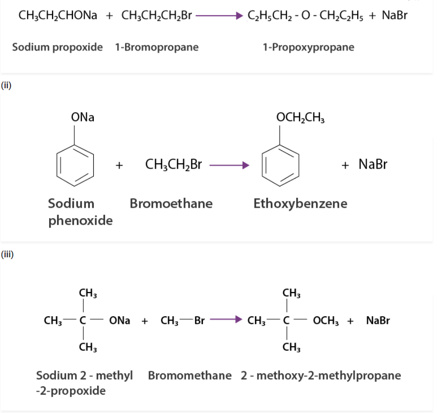 (i) 1-propoxypropane (ii) methoxybenzene and (iii) benzyl ethyl ether
