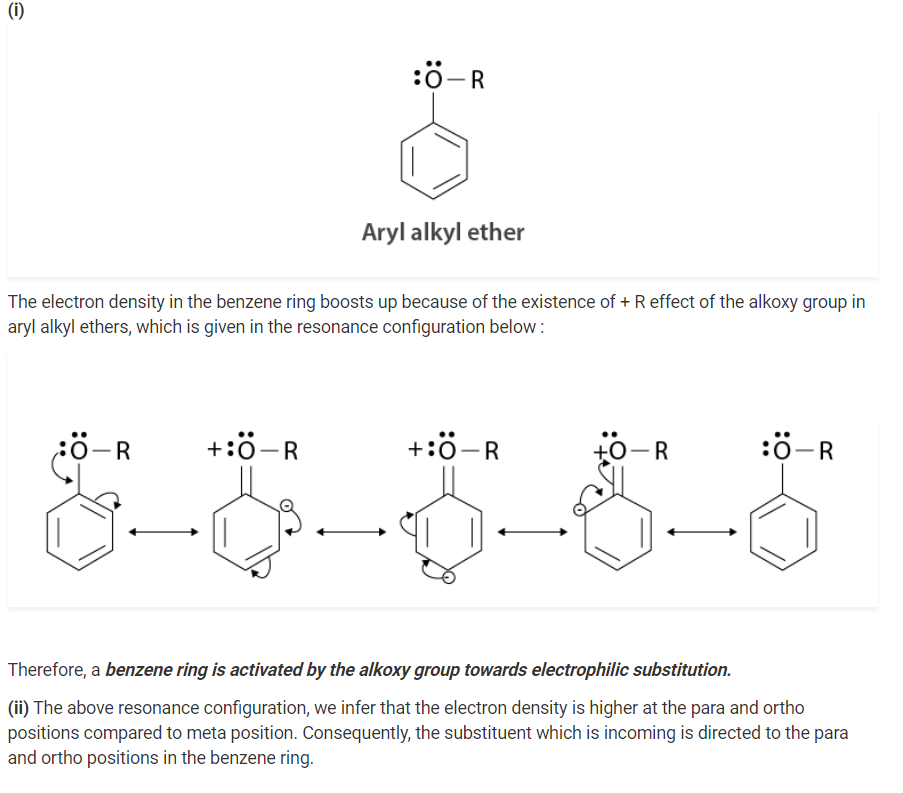 (i) the alkoxy group activates the benzene ring towards electrophilic substitution