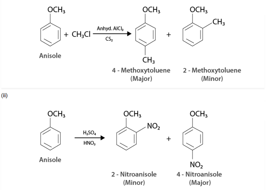 (ii) Nitration of anisole.