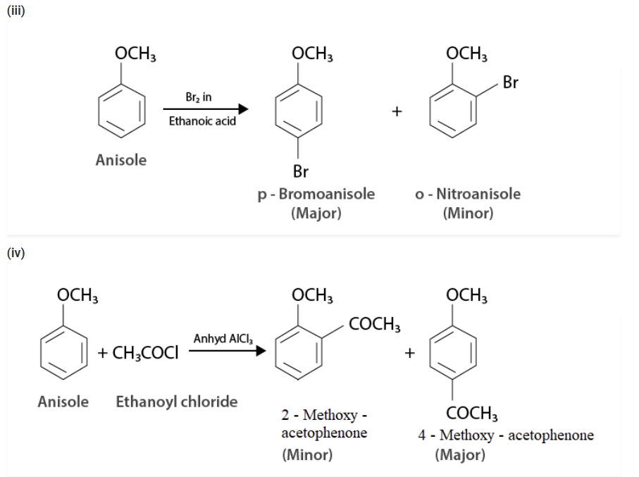 (iii) Bromination of anisole in ethanoic acid medium.