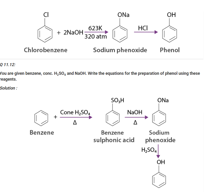 Chlorobenzene is combined with NaOH ( at 623 K & 320 atm pressure ) to prepare sodium phenoxide, resulting in phenol on acidification.