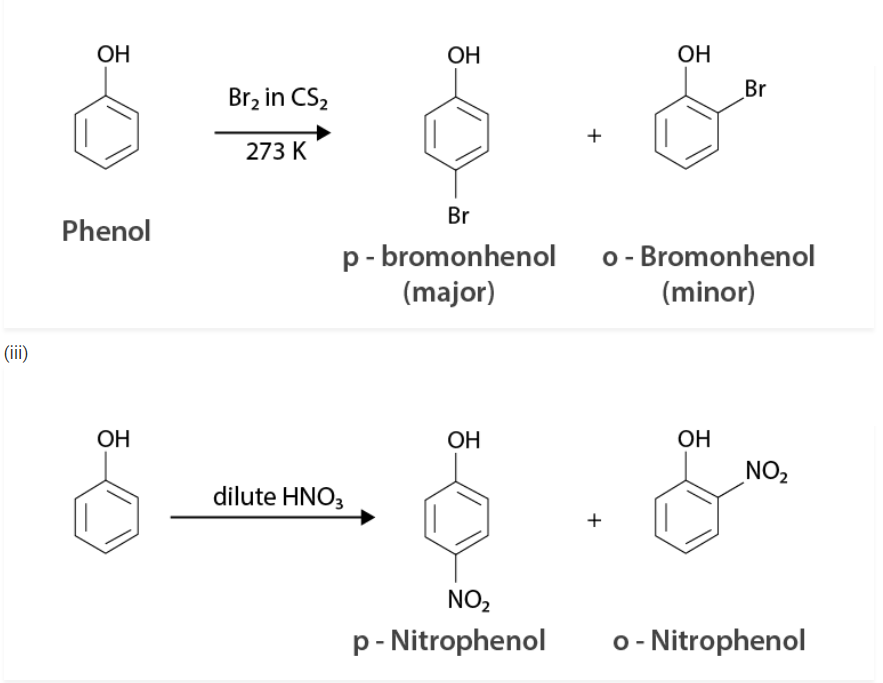 (iii) Bromination of phenol to 2,4,6-tribromophenol.