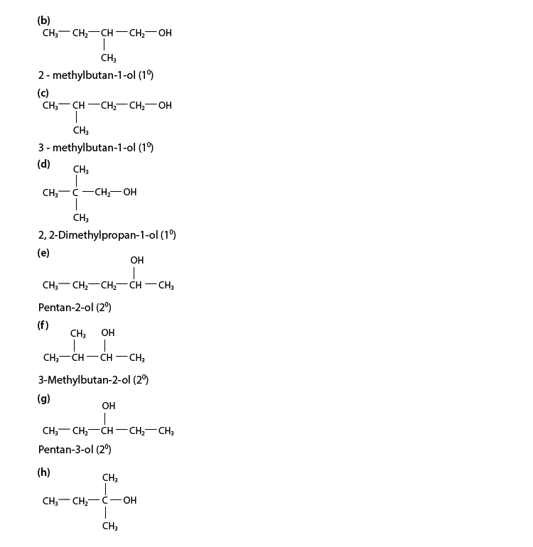 (ii) Primary alcohol: Pentan – 1 – ol ; 2 – Methylbutan – 1 – ol ;