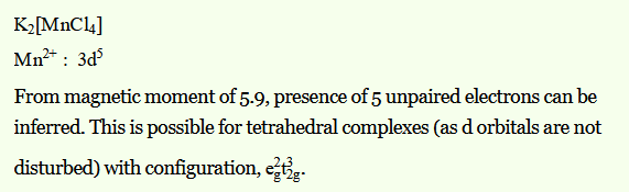 | Example | Magnetic Moment (BM) |