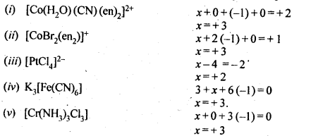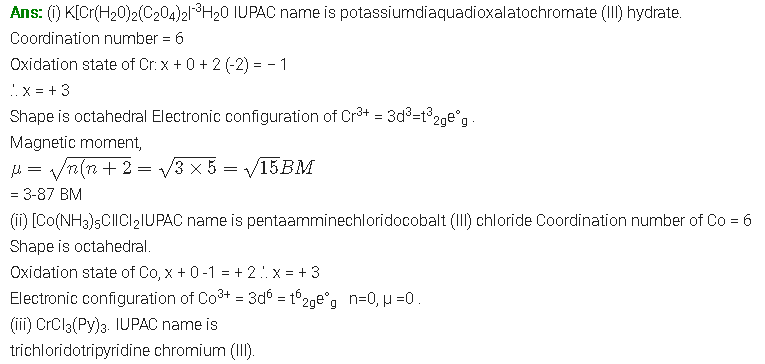 Ans: (i) K3[Co(C2O4)3] =>[CO(C204)3]3-. x + 3 (-2) = -3 . Oxidation state, x=+3 Coordination number is also 6 as C2042- is didentate. Co+3 is a case in which all electrons are paired