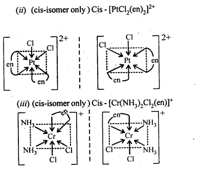 These are obtained by keeping the position of one of the ligand, say NH3 fixed and rotating the positions of others. This type of isomers do not show any optical isomerism. Optical isomerism only rarely occurs in square planar or tetrahedral complexes and that too when they contain unsymmetrical chelating ligand.