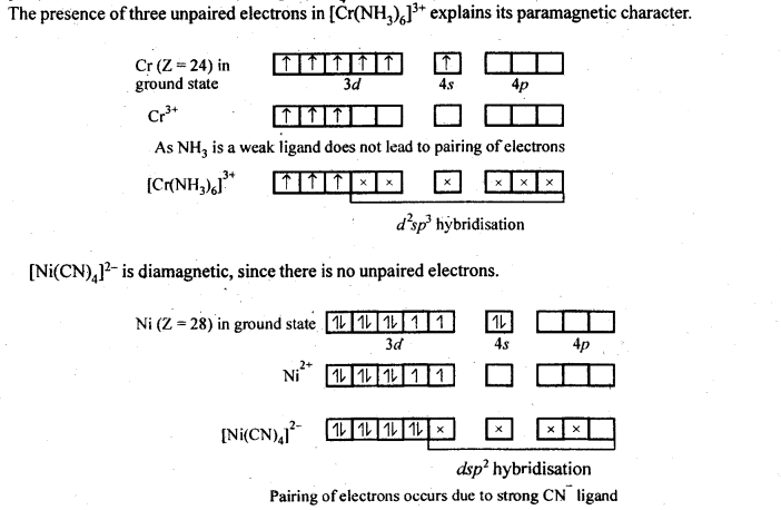 9.19. [Cr(NH3)6]3+ is paramagnetic while [Ni(CN)4]2- is diamagnetic. Explain why?