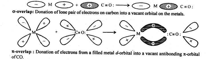 (a)σ -bond is first formed between metal and carbon when a vacant d-orbital of metal atom overlaps with an orbital containing lone pair of electrons on C-atom of carbon monoxide (: C = O:)