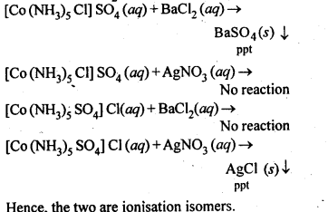 9.4. Give evidence that [Co(NH3)5Cl]S04 and [Co(NH3)5S04]Cl are ionisation isomers.