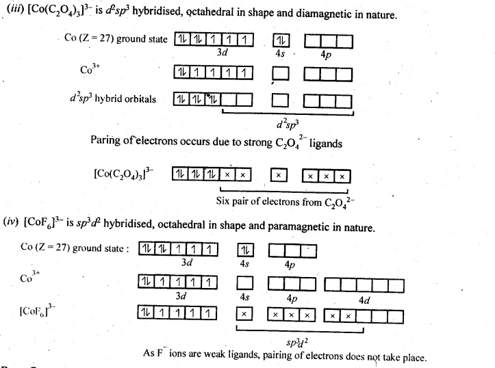 Ans: (i) K3[Co(C2O4)3] =>[CO(C204)3]3-. x + 3 (-2) = -3 . Oxidation state, x=+3 Coordination number is also 6 as C2042- is didentate. Co+3 is a case in which all electrons are paired