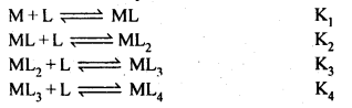 The equilibrium constant of this reaction is the measure of stability of the complex. Hence the equilibrium constant is also called as stability constant or Instability constant may be defined as equilibrium constant for reverse reaction. The formation of above complex may also be written in successive steps: