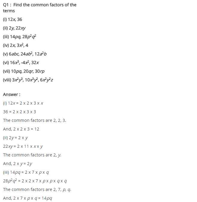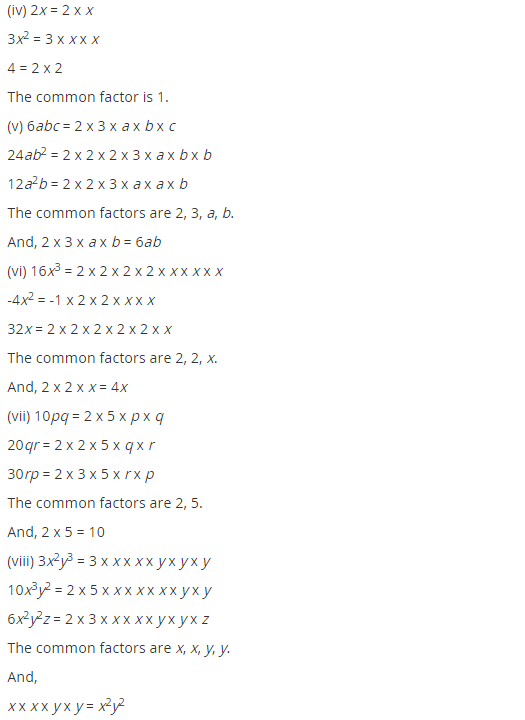 Factorisation Class 8 Extra Questions Very Short Answer Type