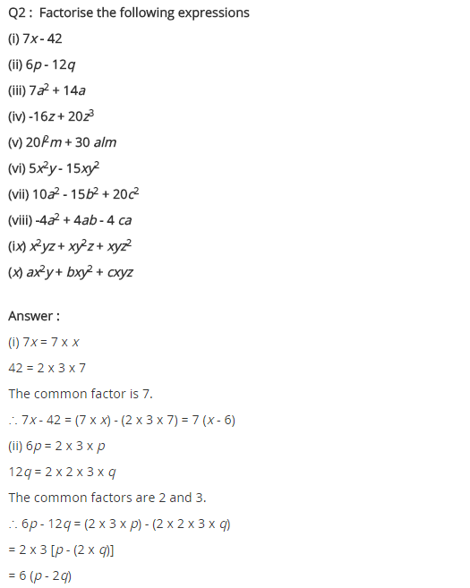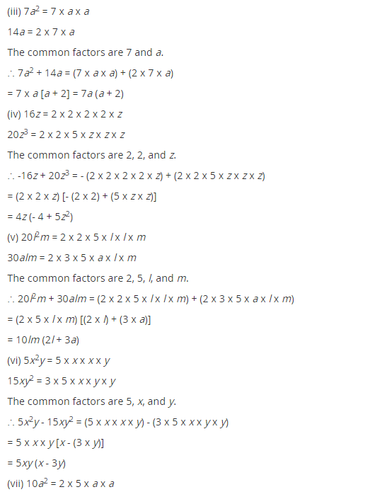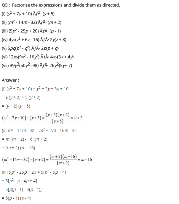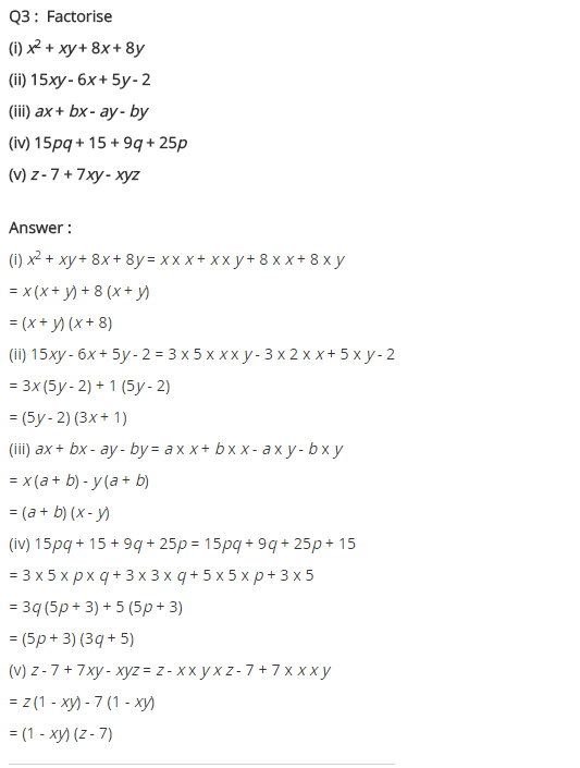 Factorisation Class 8 Extra Questions Short Answer Type