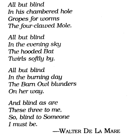 Ans: Let’s go for a little walk. Only you must tell me about things. I shall be so glad when today is over. The other bad days can’t be half as bad as this. Having a leg tied up and hopping about on a crutch is almost fun, I guess. I don’t think I’ll mind being deaf for a day, at least not much. But being blind is so frightening.