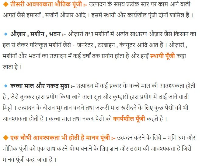 Capital: After land and labour, capital is another basic factor of production. All categories of farmers (e.g., small, medium and large) require capital. Small farmers borrow from big farmers or the village moneylenders or the traders who supply them various inputs for cultivation.