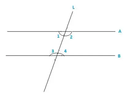 If the sum of the interior angles is equal to the sum of the right angles, then the two lines will not meet each other at any given point, hence making them parallel to each other.