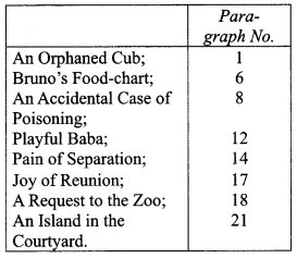An Orphaned Cub; Bruno’s Food-chart; An Accidental Case of Poisoning; Playful Baba; Pain of Separation; Joy of Reunion; A Request to the Zoo; An Island in the Courtyard.