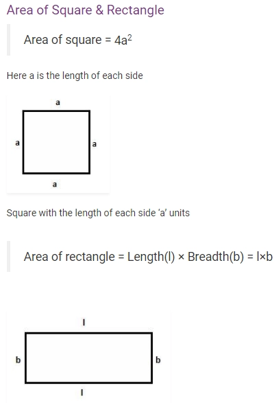 - Perimeter of a square = a + a + a + a = 4a, where a is the length of each side.