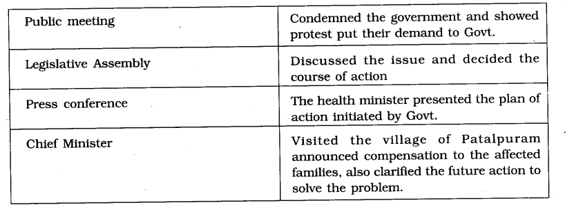 4. What was the problem in Patalpuram? What discussion/actions were taken by the following? Pill in the table.