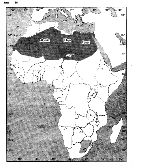 (i) On the outline map of Africa, marks the Sahara desert and any four countries around it.
