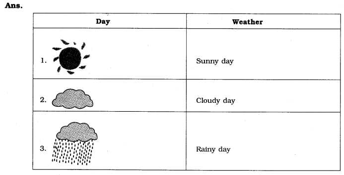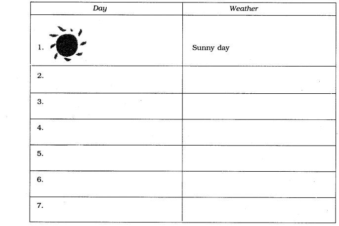 (ii) Make a weather calender for one week. Use pictures on symbols to show different types of weather. You can use more than one symbol in a day, if the weather changes. For example the sun comes out when .rain stops. An exmaple is given below: