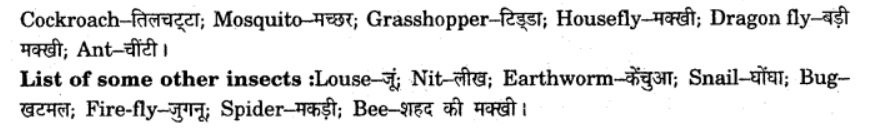 What do you call these insects in your language? (See pic in Textbook, Page-103) Add to this list the names of some insects common in your area.